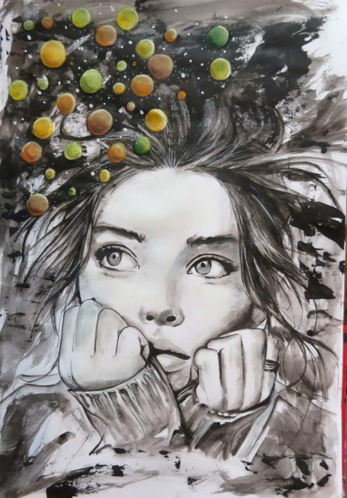 Petits croquis qui sont dans mon cahiers qui me suit partout.